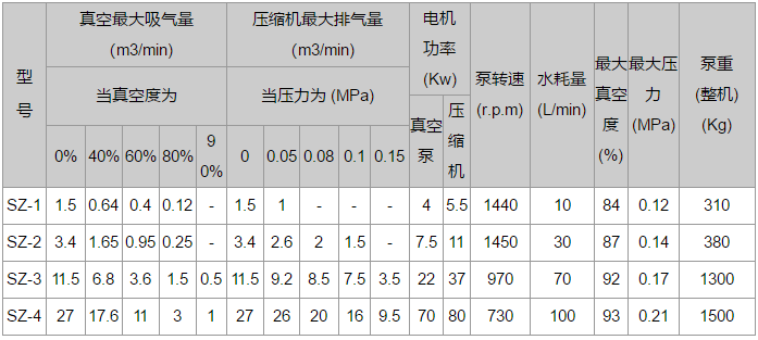 SZ系列水環真空泵及壓縮機技術規格: