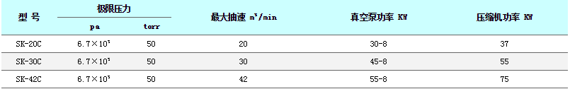 SKC型真空鑄造專用泵技術參數表: