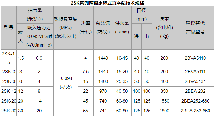 2SK系列兩級水環(huán)式真空泵和2SK—剛系列兩級水環(huán)真空泵一大氣噴射泵機組被用來抽吸空氣和其它無腐蝕性、不溶于水、允許含有少量固體顆粒的氣體以便在密閉容器中獲得較高真空。 它被廣泛應用于食品、紡織、化工、醫(yī)藥、冶金工業(yè)及電子領域的真空蒸發(fā)、真空濃縮、真空回潮、真空浸漬、真空干燥及真空冶煉等。具有真空度高、在高真空區(qū)抽速大及結構緊湊、工作可靠、維修方便等特點.